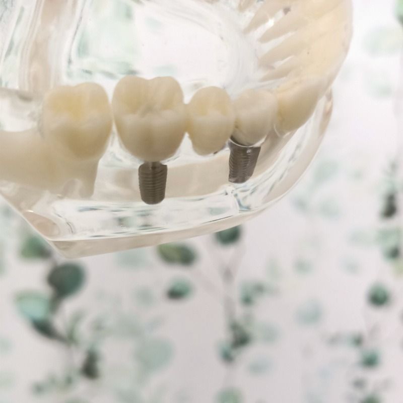 Los implantes sustituyen a los dientes perdidos, son raíces artificiales. Se introducen en el hueso maxilar y se dejan cicatrizar durante unas semanas.